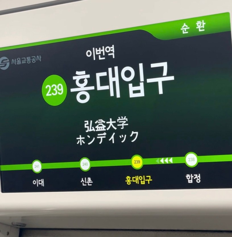 地鐵上每站都會用韓文、英文、中文、日文報下一站的站名,但需要仔細聆聽,所以還是自己看一下。