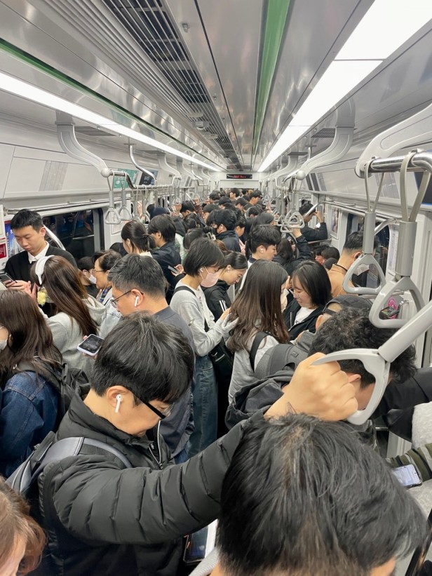 最好能避開上下班的尖峰時間搭乘地鐵,因為那個人潮真的很嚇人,沒有大陸的可怕,但比台灣的可怕。