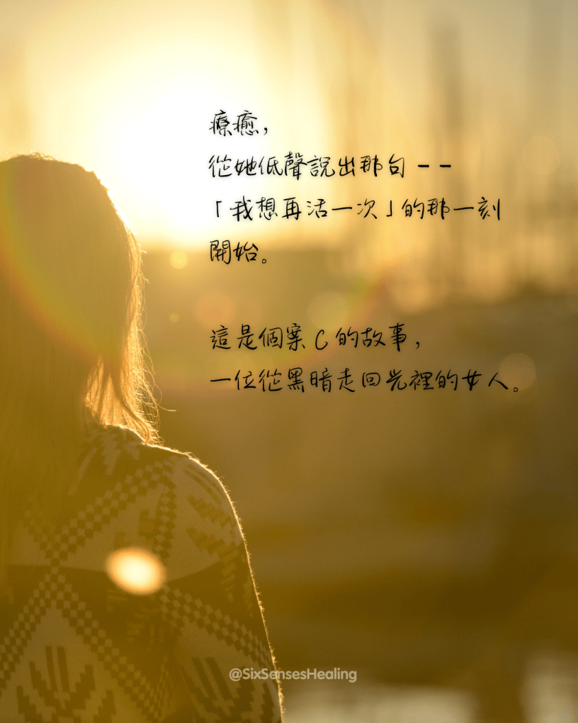 這是個案 C 的故事,一位從黑暗走回光裡的女人。